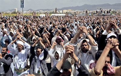 تظاهرة حاشدة في صنعاء تطالب برحيل صالح. أ.ب