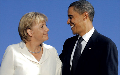 أوباما وميركل خلال لقاء سابق بينهما. أ.ف.ب
