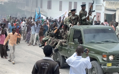 صوماليون خلال احتجاج في مقديشو ضد استقالة رئيس الوزراء المتوقعة. أ.ب