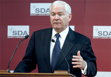 وفي إشارة الى موجة الثورات على الانظمة في العالم العربي، قال غيتس «لاشك ان ثمة خطاً فاصلاً في الشرق الاوسط بين الحكام الذين لا يتورعون عن قتل شعوبهم للبقاء في السلطة واولئك المستعدين لتسليمها».