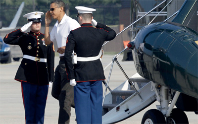 أوباما يصل إلى «قاعدة أندروز» قادماً من كامب ديفيد. أ.ب