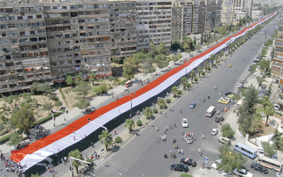 مؤيدو الأسد رفعوا علماً بطول 2300 متر. أ.ب