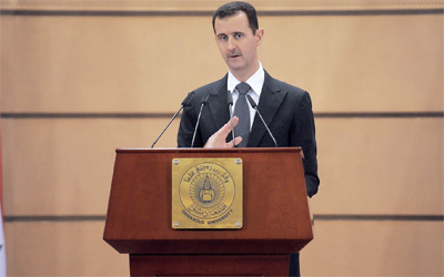 ودعا الاسد الى «حوار وطني» لإخراج سورية من الازمة التي تواجهها منذ بدء الحركة الاحتجاجية في مارس الماضي، مؤكدا ان هذا الحوار يمكن ان يفضي الى دستور جديد. وقال ان «الحوار سيكون شعار المرحلة المقبلة».