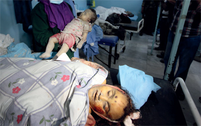 السلطات الليبية تعرض طفلين مـــــــــــــــــــــــــــــــــن ضحايا قصف «الناتو». أ.ف.ب