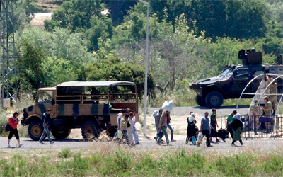 وقد احاطت بهم عربات الدرك التركي وحافلات صغيرة استدعيت على الأرجح لتنظيم نقلهم الى خمس مخيمات للاجئين السوريين، اقامها الهلال الاحمر التركي في محافظة هاتاي (جنوب تركيا)، التي تستقبل بالفعل 10200 سوري. كما شوهدت مجموعة من مئات الاشخاص على الطريق نفسها تسير باتجاه سيارات الدرك.