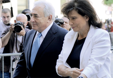 ستروس وزوجته متجهين إلى المحكمة أمس. إي.بي. إيه
