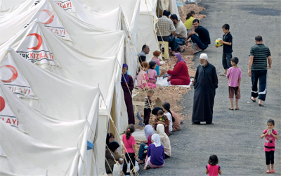 اللاجئون السوريون يعيشون في 5 مخيمات مؤقتة. ا.ب