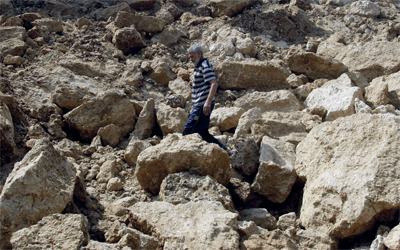 فلسطيني بموقع في محجر استهدفته غارة إسرائيلية. أ.ب