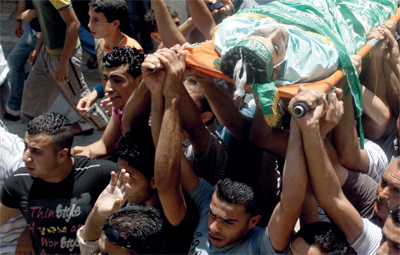 استشهد، أمس، فلسطيني برصاص جنود الاحتلال الإسرائيلي في مخيم الفارعة للاجئين بالقرب من نابلس شمال الضفة الغربية. فيما جرحت فلسطينية في غارتين إسرائيليتين على قطاع غزة، إثر اطلاق ثلاثة صواريخ على جنوب الدولة العبرية. فيما وقعت مواجهات بين مئات المتطرفين اليهود وشرطيين اسرائيليين، أمس، في حي ميا شيريم للمتدينين في القدس.