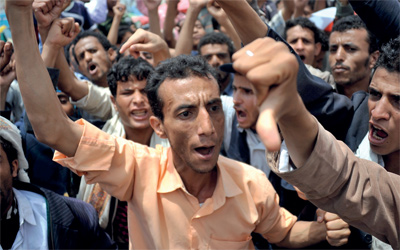 قتل مدير أمن مديرية شرعب الرونة في شمال تعز (جنوب صنعاء) مع اثنين من مرافقيه، أمس، في كمين نصبه مسلحون قبليون معارضون للنظام، فيما قتل سبعة مدنيين في قصف قوات الحرس الجهوري لشمال المدينة. في وقت تجمع عشرات آلاف المعارضين والموالين للنظام في صنعاء وبقية مدن البلاد للصلاة والتظاهر، الا أن المحتجين الشباب في صنعاء تفرقوا بعد انطلاقهم في تظاهرات صغيرة وسط انقسامات بينهم.