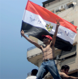 أحد الثوار يلوّح بعلم مصر في ميدان التحرير. أ.ف.ب