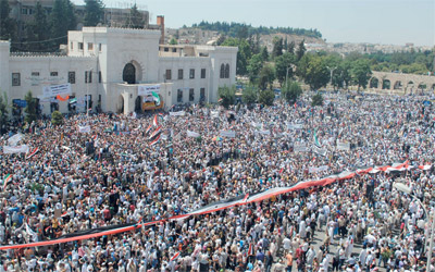 تظاهرة مليونية في حماة تطالب بإسـقاط الأسد