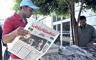 مصري يطالع تغطية محاكمة مبارك. أ.ب