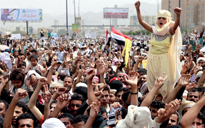 تظاهرة في صنعاء تطالب باستقالة صالح. رويترز