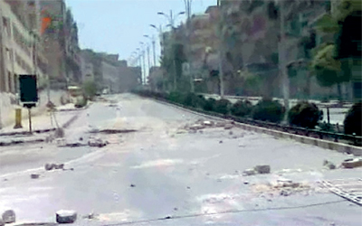 صورة نشرتها وكالة الأنباء السورية (سانا) تظهر الشوارع فارغة في مدينة حماة بعد اجتياحها. إي.بي.إيه