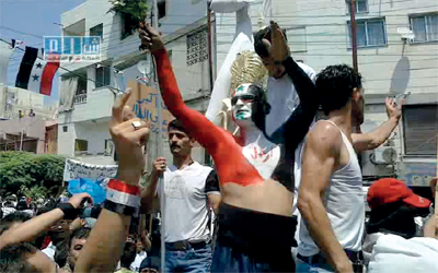 صور بثتها شبكة شام تظهر تظاهرة في اللاذقية تطالب برحيل الأسد. إي.بي.إيه