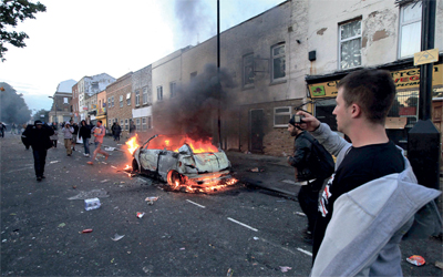 وقال رئيس شرطة لندن تيم غودوين في تصريح للصحافيين امام مقر سكوتلاند يارد «هناك اضطرابات كبيرة في عدد من الأحياء في انحاء لندن. من هنا فإن اعداداً كبيرة من الشرطة منتشرون، ولكني اناشد الأهالي البدء بالاتصال بأبنائهم والعودة الى منازلهم».