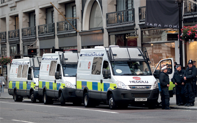 انتشار كثيف للشرطة البريطانية في لندن ومدن عدة لمنع الشغب. غيتي
