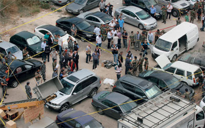 موقع انفجار العبوة الناسفة في ضاحية بيروت الشمالية. أ.ف.ب