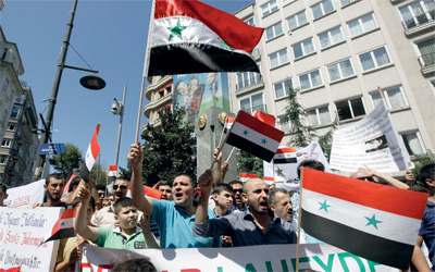 تظاهرة حاشدة أمام القنصلية السورية في إسطنبول تطالب برحيل الأسد. رويترز