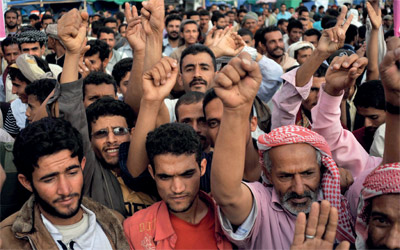 تظاهر مئات الآلاف من اليمنيين المعارضين للرئيس علي عبدالله صالح أمس، في صنعاء فضلاً عن اعداد مماثلة في مدينتي تعز والحديدة بجنوب غرب وغرب البلاد. وقال مراسل وكالة فرانس برس، إن حجم الحشد في صنعاء ناهز الحشود الضخمة التي خرجت للتظاهر في فبراير ومارس الماضيين. وجاءت التظاهرة بعد صلاة الجمعة بهدف اظهار الدعم للمجلس الذي شكلته الأربعاء في صنعاء اطياف المعارضة المختلفة، بهدف تنحية الرئيس صالح. كما ضمت المسيرات التي خرجت في تعز والحديدة مئات الآلاف من المحتجين حسب ما صرح سكان في المدينتين الرئيستين.