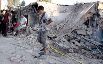 عراقيون في إحدى المناطق التي تعرضت لتفجير جنوب شرق بغداد. أ.ب