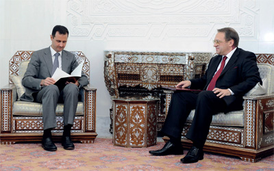 من ناحية أخرى أكد الرئيس السوري تقديره لموقف روسيا «المتوازن» اثناء استقباله نائب وزير الخارجية الروسي ميخائيل بوغدانوف مبعوث الرئيس الروسي ديمتري مدفيديف.