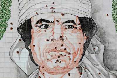 رصاص الثوار اخترق جدارية للزعيم الليبي الفار-أ.ب