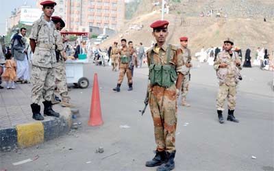 قوات يمنية في حراسة أحد الشوارع بصنعاء. إي.بي.أيه