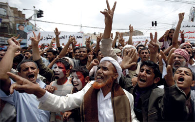 تظاهرة في صنعاء تطالب بإسقاط صالح. رويترز