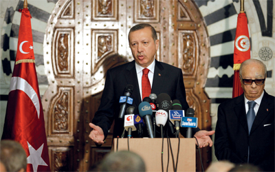 وقد وصل اردوغان الذي يقوم بجولة في بلدان «الربيع العربي»، أول من أمس، الى تونس، بعد محطة اولى في مصر، وسيتوجه لاحقاً الى ليبيا.