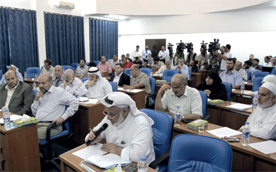 «حماس» أكدت رفضها الخطوة الفلسطينية خلال اجتماع المجلس التشريعي في غزة. أ.ف.ب