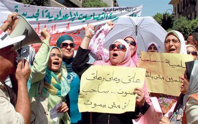 تظاهرة للمعلمين المصريين أمس أمام مجلس الوزراء. إي.بي.أيه
