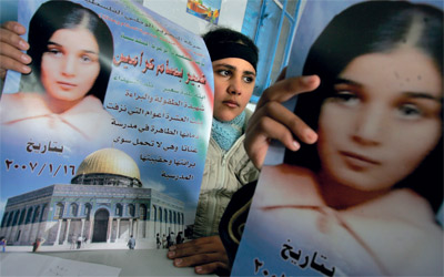 ملصق تذكاري للشهيدة في مدرستها ببلدة عناتا قرب القدس. أ.ب