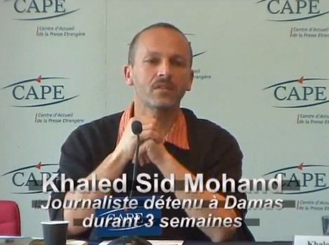 روى الصحفي الجزائري في إذاعة فرانس كولتور، وصحيفة لوموند، خالد سي محند، أمس، قصة اعتقاله في مركز للمخابرات السورية في دمشق لمدة 24 يوماً، بين التاسع من أبريل والثالث من أيار الماضيين، في أوج الحركة الاحتجاجية السورية ضد نظام الرئيس بشار الأسد.