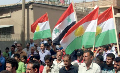 تظاهرة احتجاجية ضدّ نظام الأسد في عامودا في القامشلي. أ.ب