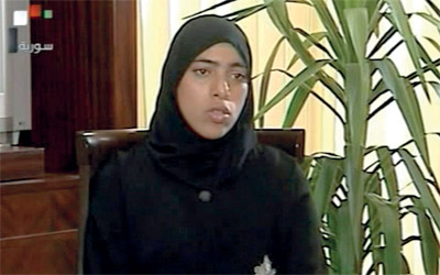 صورة بثها التلفزيون السوري لمن قال إنها زينب الحصني. أ.ب