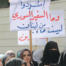 لبنانيات يطالبن بطرد السفير السوري. أ.ب