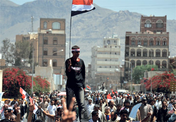مناهضو الرئيس اليمني علي عبدالله صالح خلال تظاهرة في صنعاء. إي.بي.إيه