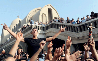 تعرض موكب تشييع الأقباط ضحايا أحداث ماسبيرو في ساعات الصباح الأولى، أمس، لهجوم بالحجارة والزجاجات الفارغة من مجهولين، بينما كان في طريقه الى مدينة 6 أكتوبر، حيث تم دفن 17 جثة في مقبرة جماعية أعدت خصيصا. وفيما نفى الجيش اطلاق النار على المحتجين، قررت النيابة العسكرية حبس 21 متهماً في أحداث ماسبيرو 15 يوماً، بينما قدم وزير المالية ونائب رئيس الوزراء المصري، حازم الببلاوي، استقالته غداة المواجهات الدامية.