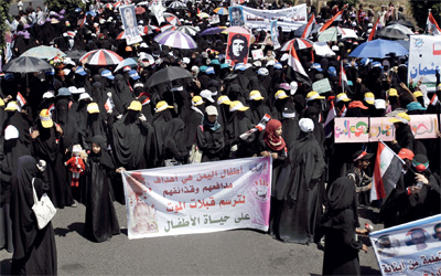 تظاهرة نسائية في صنعاء تطالب باستقالة صالح. أ.ب