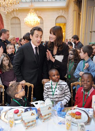 وللرئيس الفرنسي البالغ من العمر 56 عاما ثلاثة اولاد (بيار 26 عاما وجان 25 عاما ولوي 14 عاما). وهو ايضا جد لحفيد. ولكارلا البالغة من العمر 43 عاما ابن من الفيلسوف رافاييل انتوفين اسمه اوريليان ويبلغ من العمر عشرة سنين.
