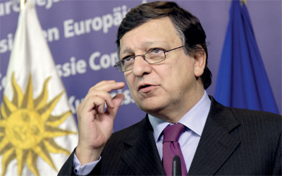 باروسو خلال مؤتمر صحافي في بروكسل. أ.ب