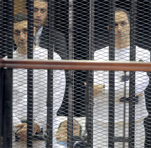مبارك ونجلاه خلال الجلسات السابقة. أ.ب - أرشيفية