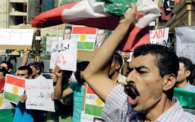 سوريون خلال احتجاج ضد الأسد أمام سفارة بلادهم في بيروت. أ.ب