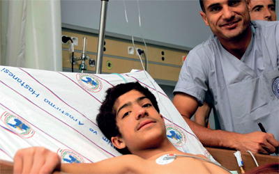 الفتى فرحات توكاي يتلقى الرعاية الطبية. رويترز