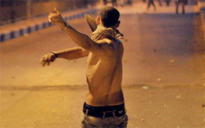 شاب مصري يرشق قوات الأمن بالحجارة خلال أحداث ماسبيرو. أرشيفية - إي.بي.إيه
