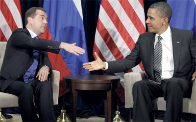أوباما وميدفيديف يبحثان «رد مشترك» ضد «نووي إيران». أ.ب