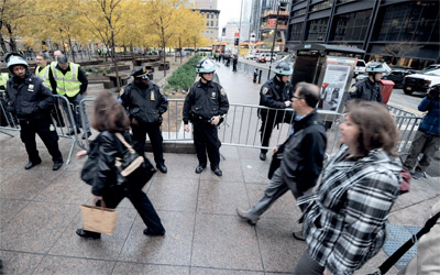 تدخل مئات من عناصر الشرطة في وقت مبكر، أمس، لاجلاء المتظاهرين من حركة «احتلوا وول ستريت» من مركز اعتصامهم في نيويورك، حيث تم تفكيك خيامهم من ساحة زوكوتي بارك، ومنع الوصول الى الساحة، وتم تطويقها بالكامل بوساطة حواجز معدنية.