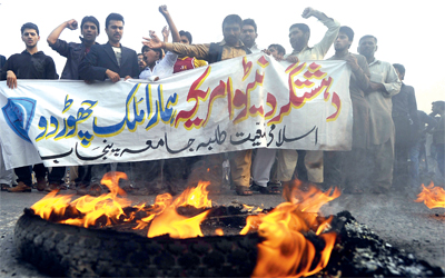 الغارة الجوية للأطلسي أثارت موجة من الغضب في لاهور. أ.ف.ب